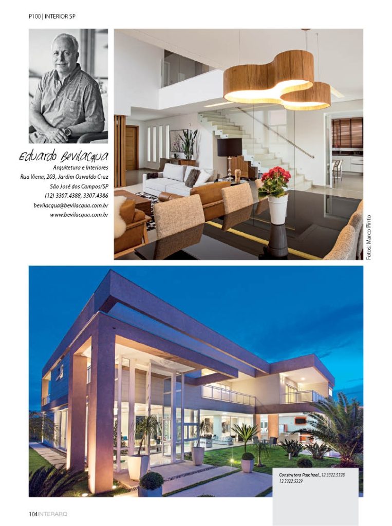 A consagrada revista InterArq Interior SP destacou o arquiteto e engenheiro Eduardo Bevilacqua entre os 100 profissionais de maior relevância do estado de São Paulo.