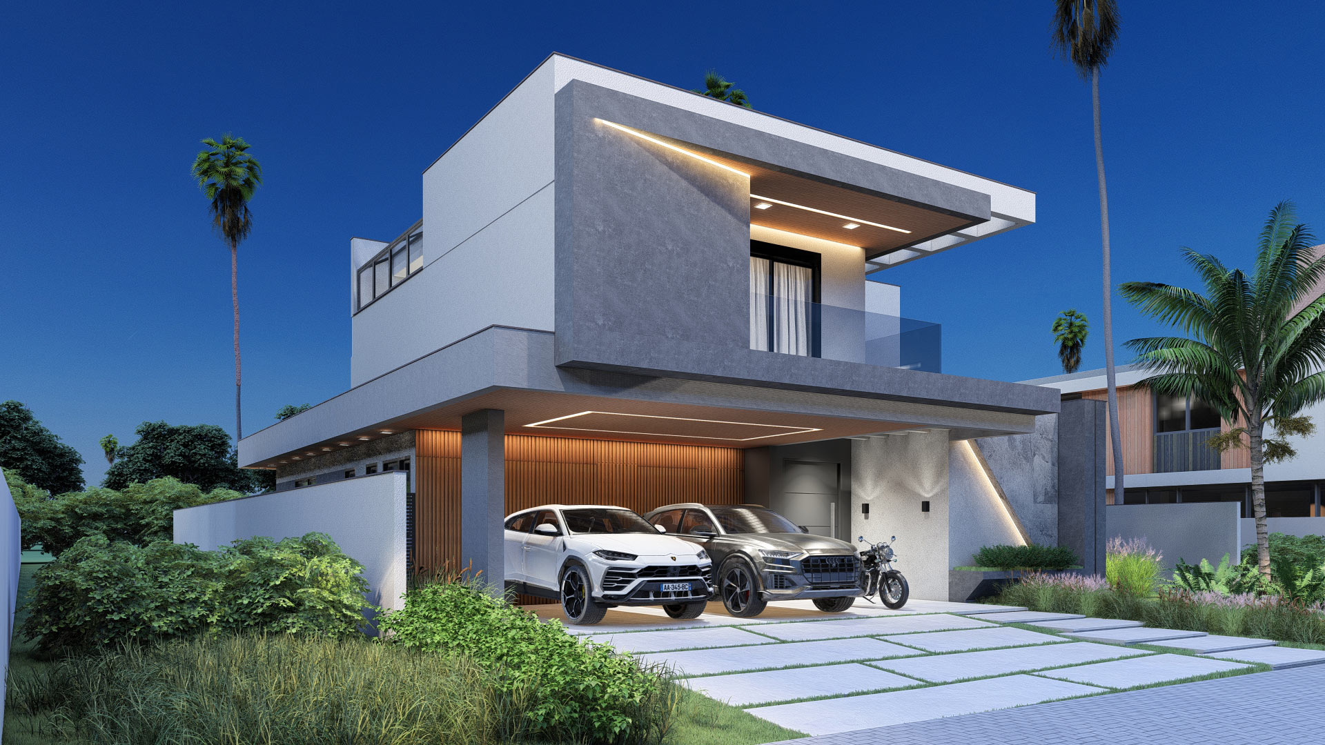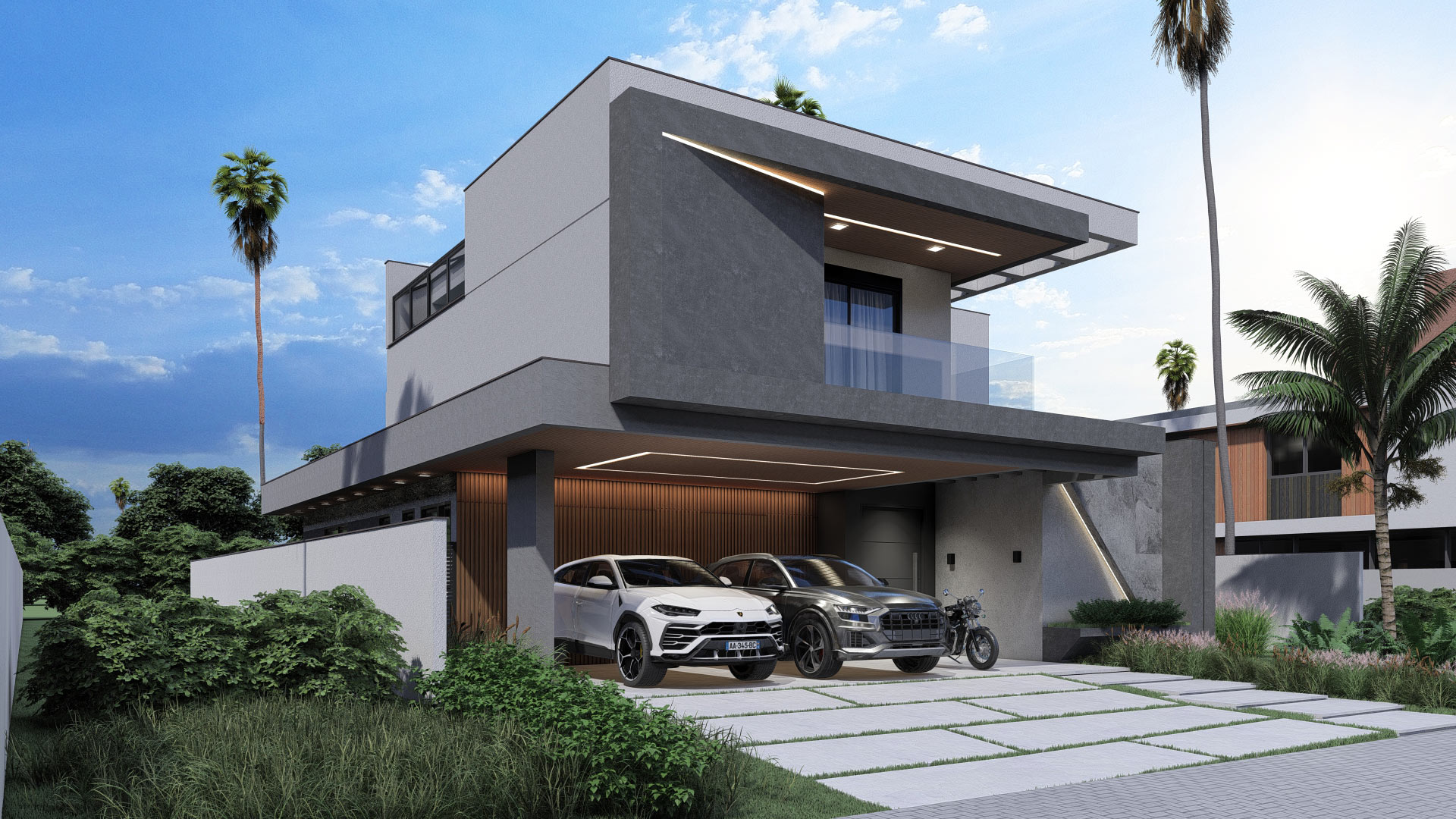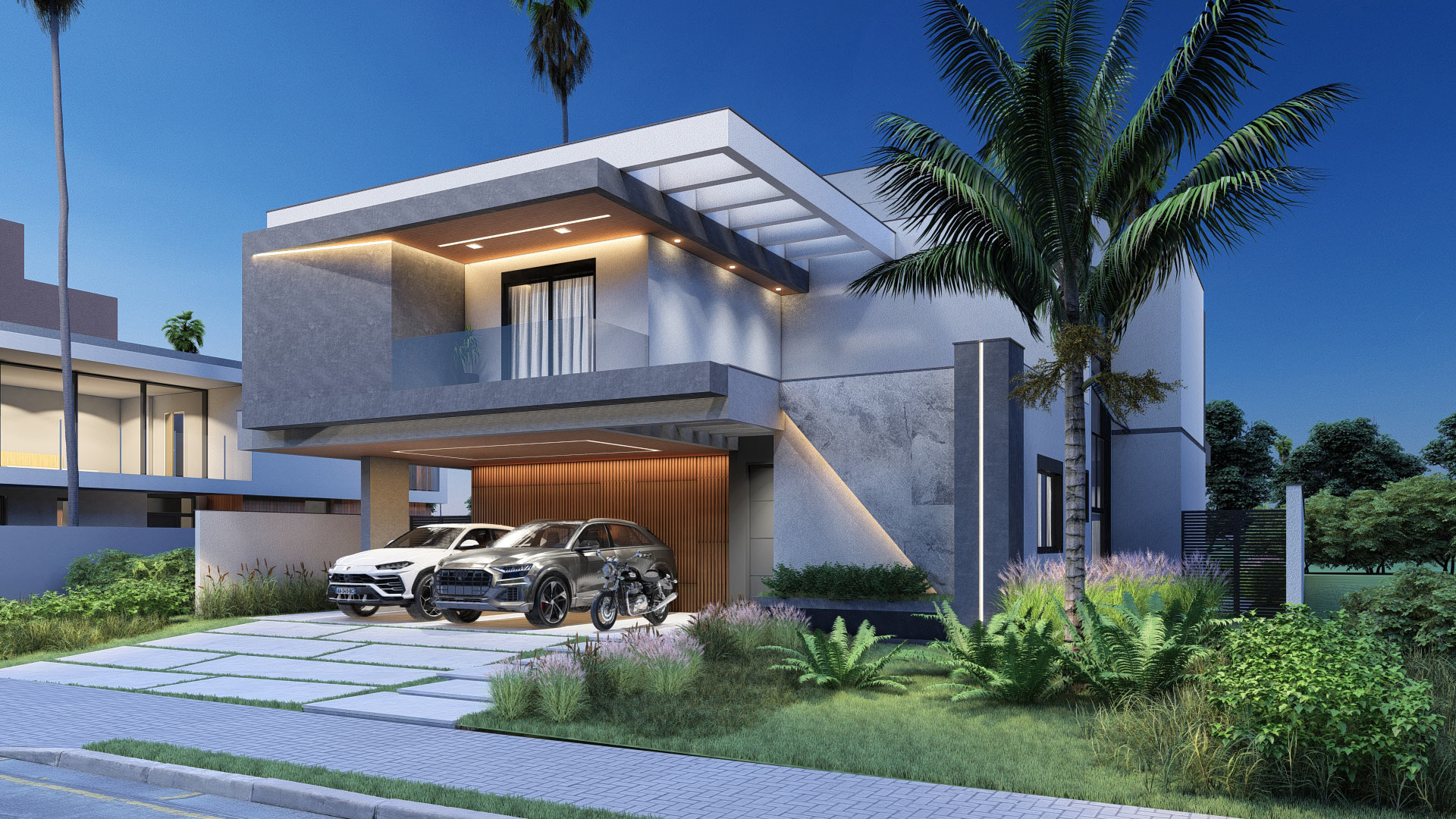 Esta residência no condomínio Santa Bárbara foi projetada para Bruna e Renato, unindo imponência, integração e um desenho arquitetônico que valoriza cada curva do terreno. A composição robusta, os materiais nobres e a harmonia entre áreas internas e externas criam uma casa contemporânea, elegante e pensada para viver com amplitude.