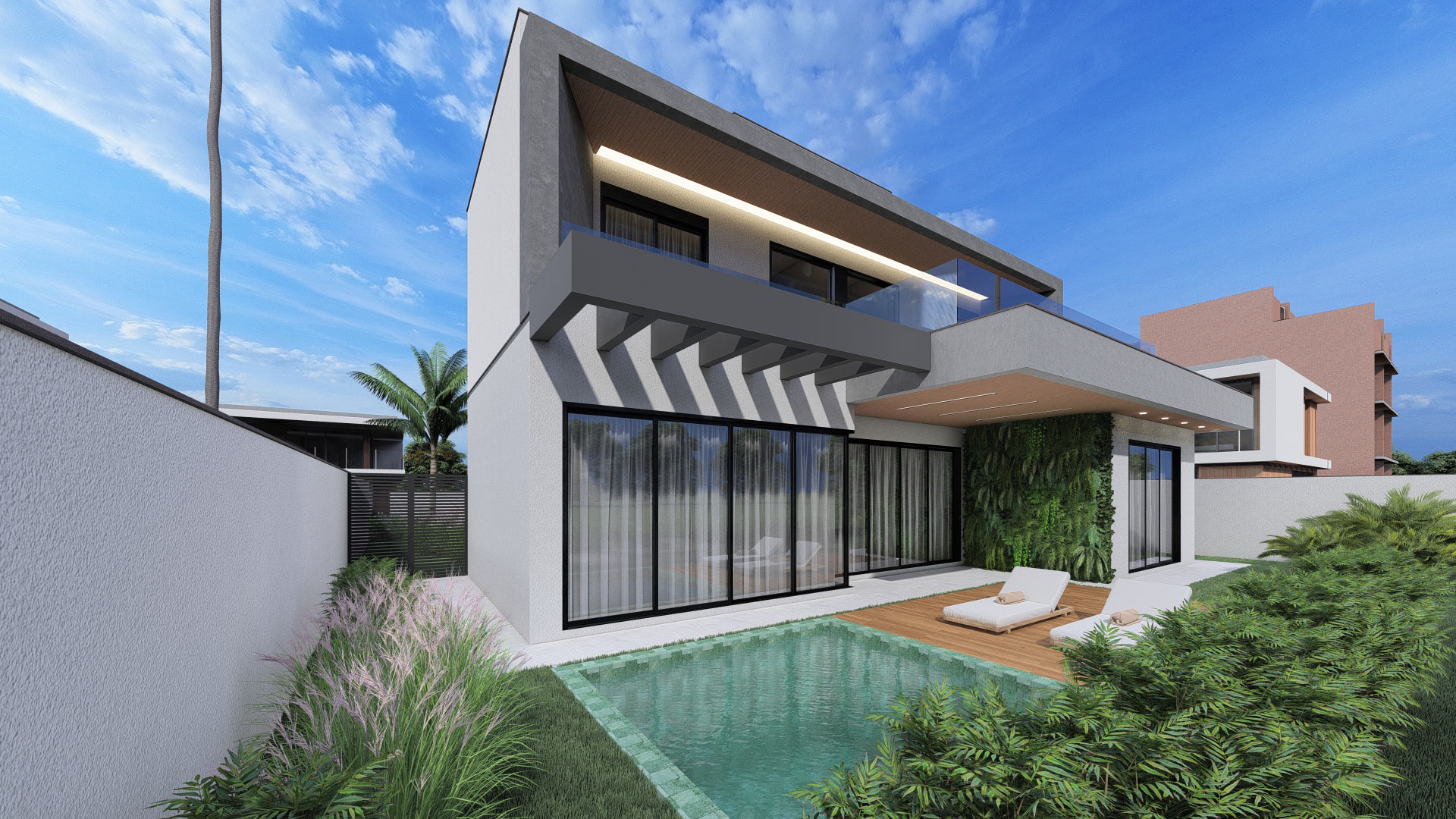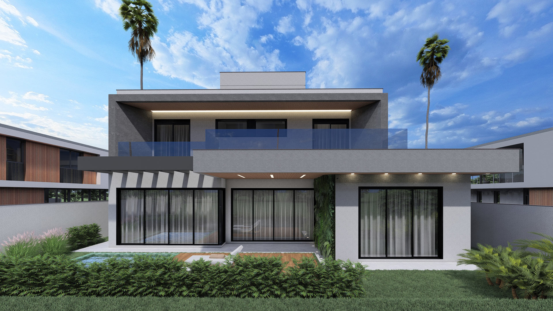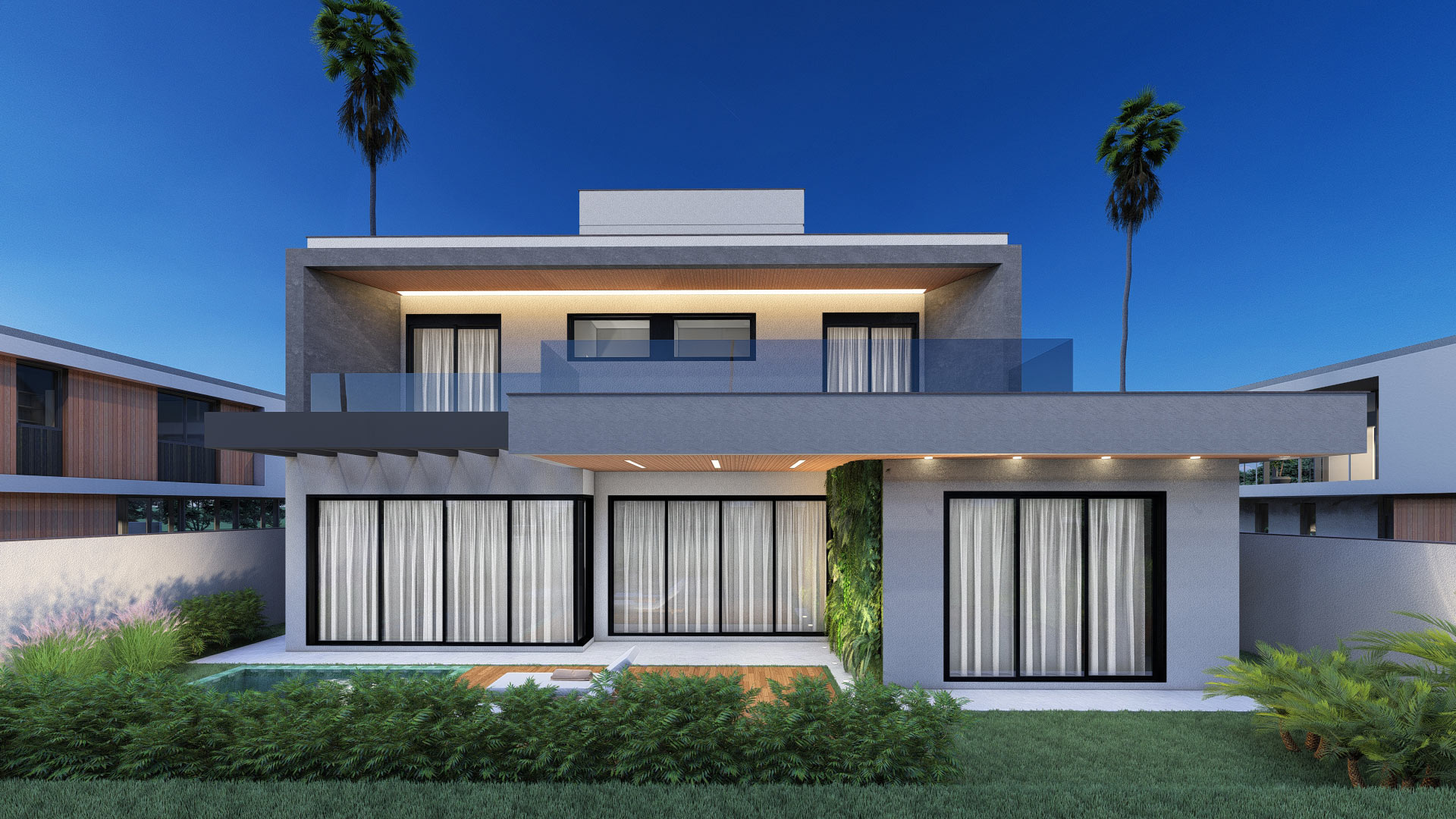 Esta residência no condomínio Santa Bárbara foi projetada para Bruna e Renato, unindo imponência, integração e um desenho arquitetônico que valoriza cada curva do terreno. A composição robusta, os materiais nobres e a harmonia entre áreas internas e externas criam uma casa contemporânea, elegante e pensada para viver com amplitude.