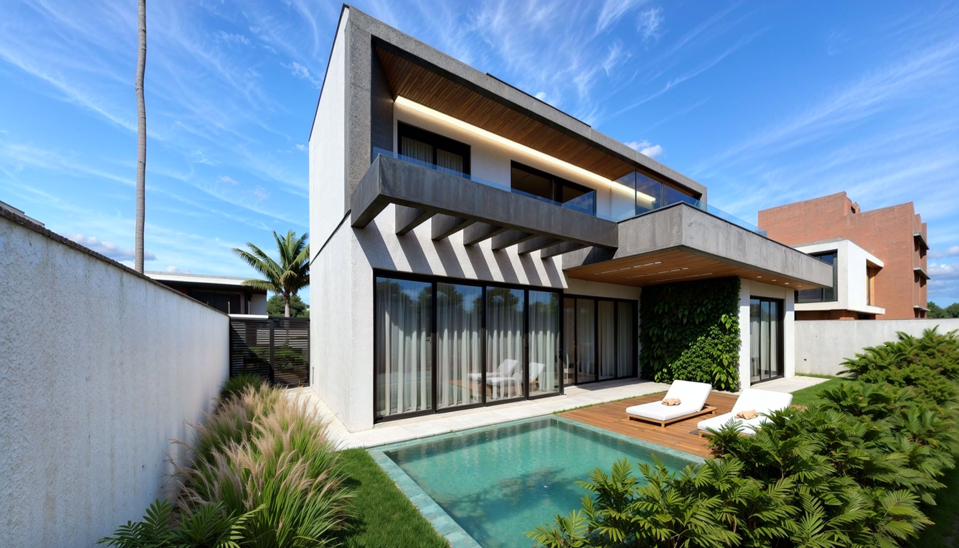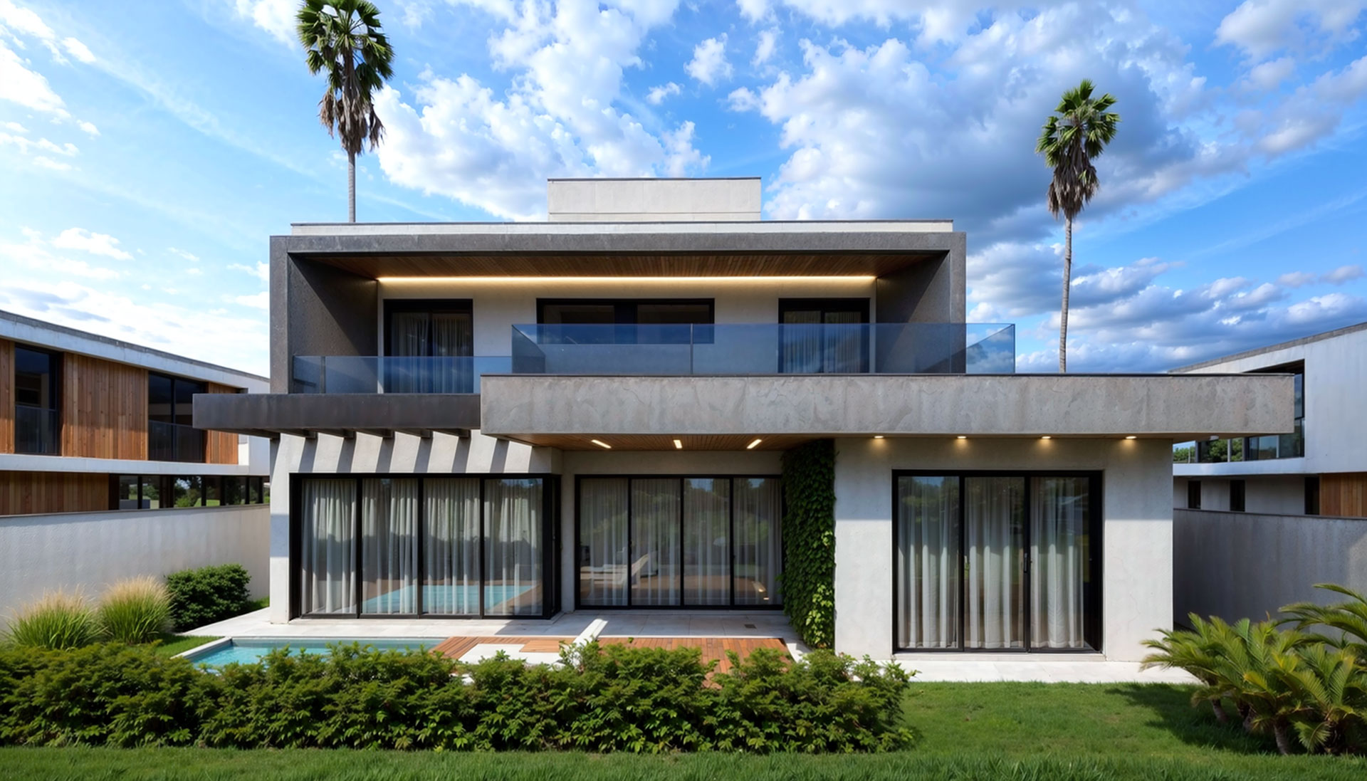 O resultado é a união entre criatividade arquitetônica e engenharia precisa. Volumes sólidos em concreto ganham movimento, elegância e equilíbrio, revelando uma residência que mantém a imponência da arquitetura contemporânea sem abrir mão da leveza visual. Um projeto onde forma, técnica e estética caminham juntas para criar uma solução harmônica e atemporal.