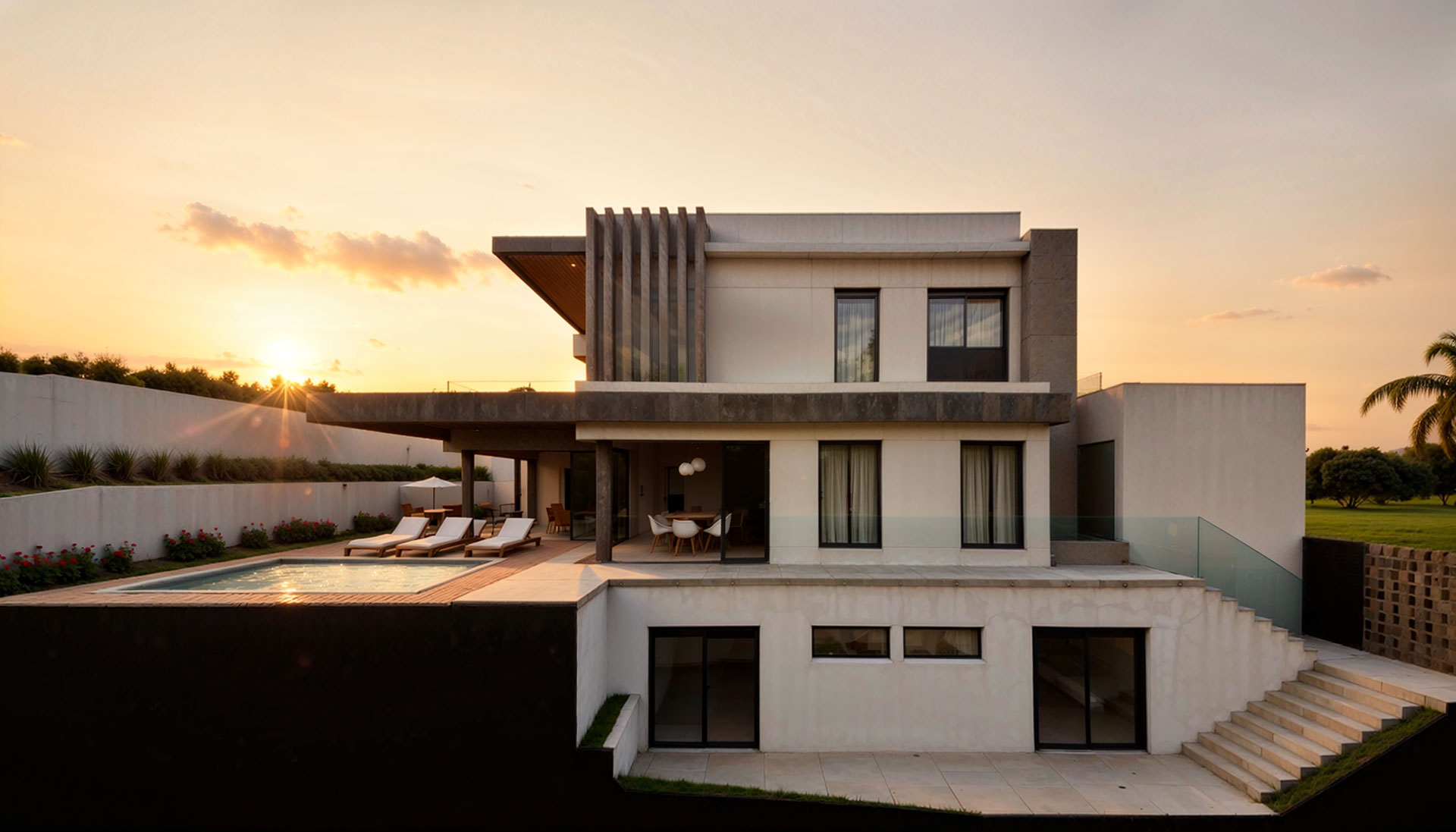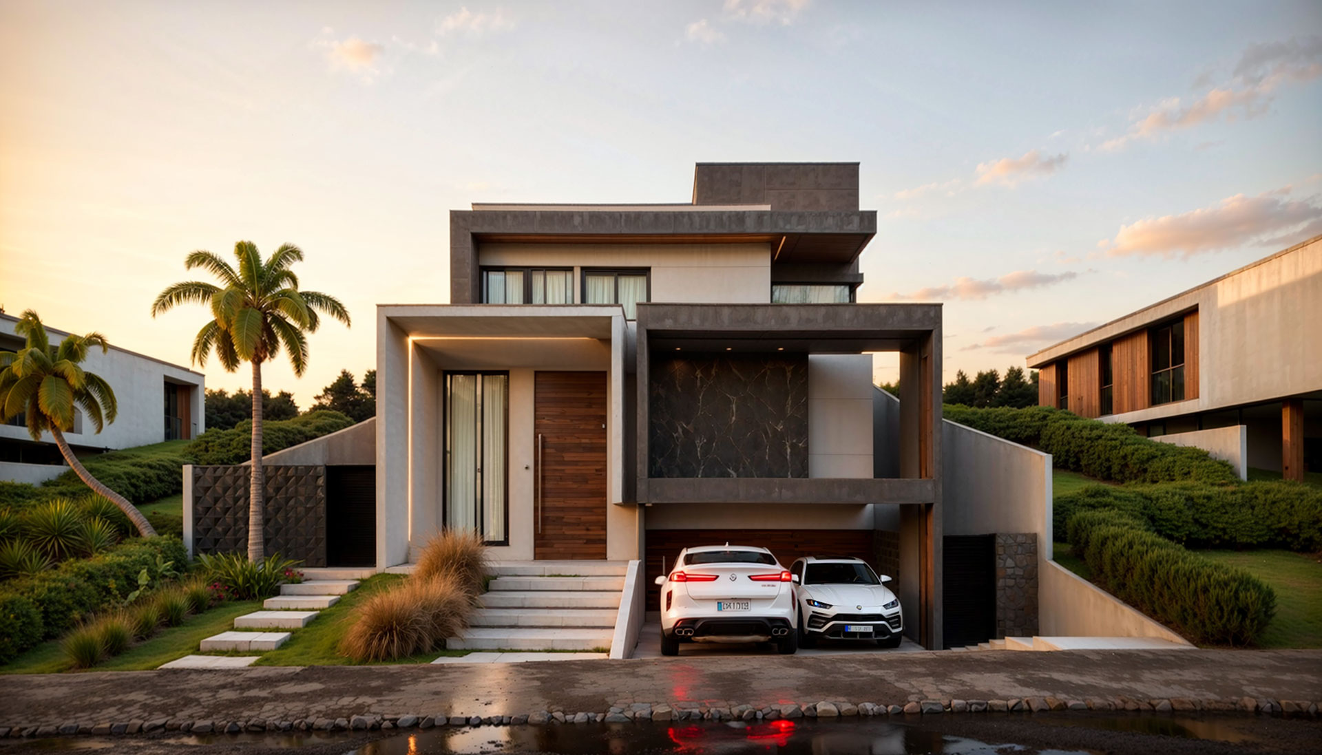 Lilian e Rafael – Alphaville, implantada em um terreno de 470 m², com 390 m² de área construída, esta residência traduz a arte de transformar terrenos desafiadores em fachadas imponentes. O projeto combina arquitetura contemporânea, soluções técnicas precisas e uma leitura inteligente da topografia para criar uma casa marcante, funcional e visualmente equilibrada.