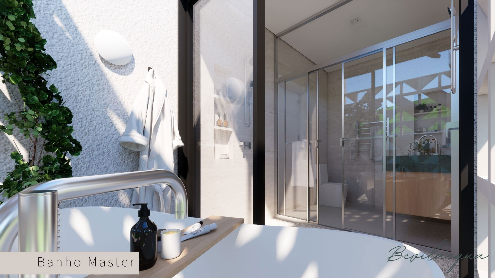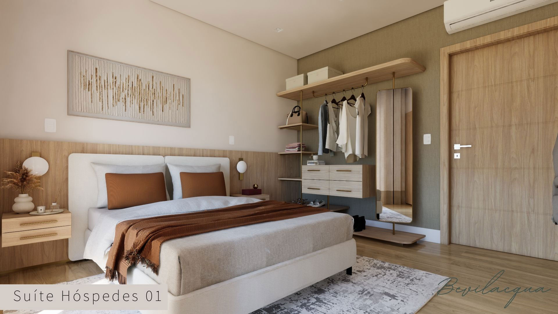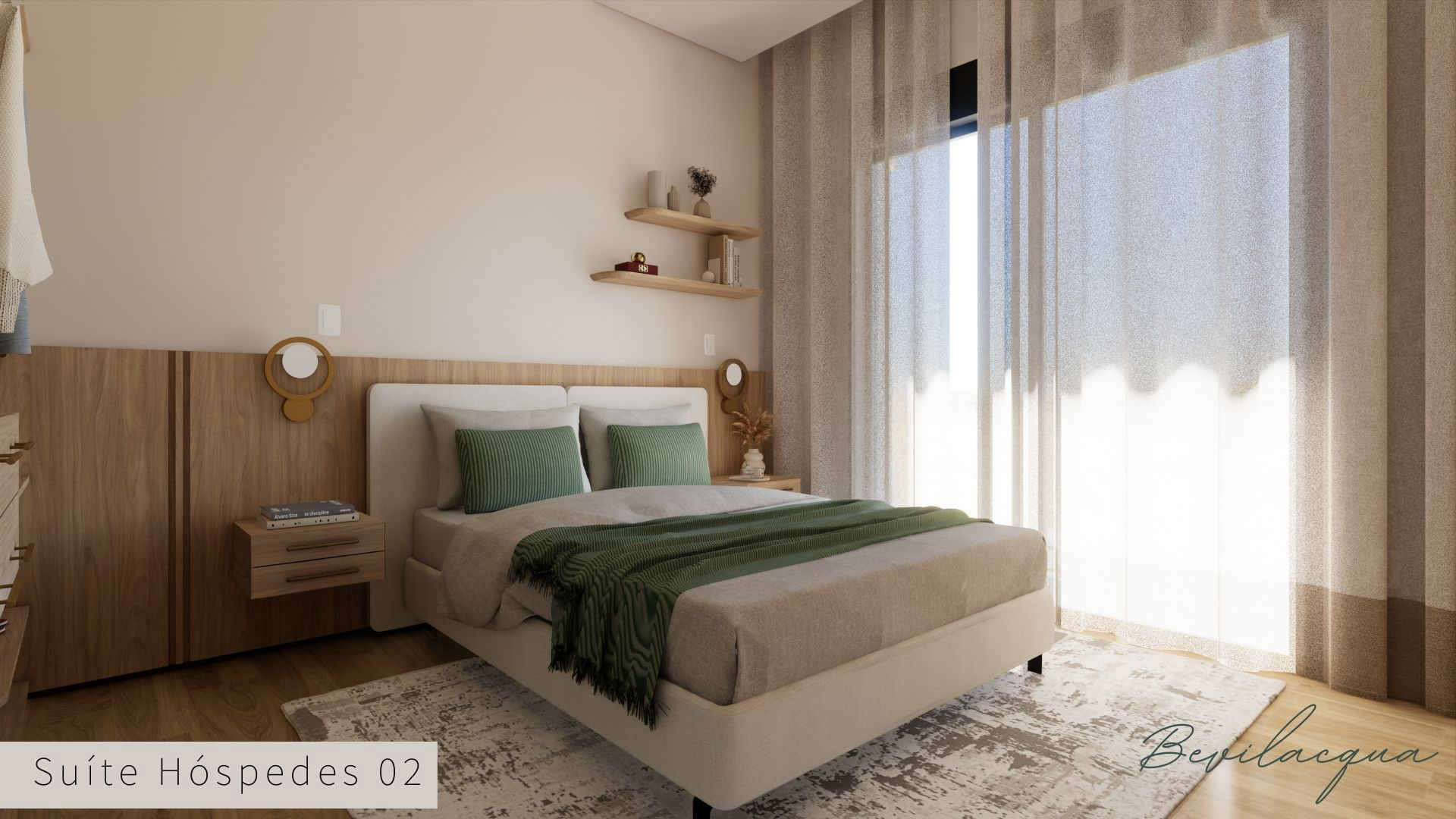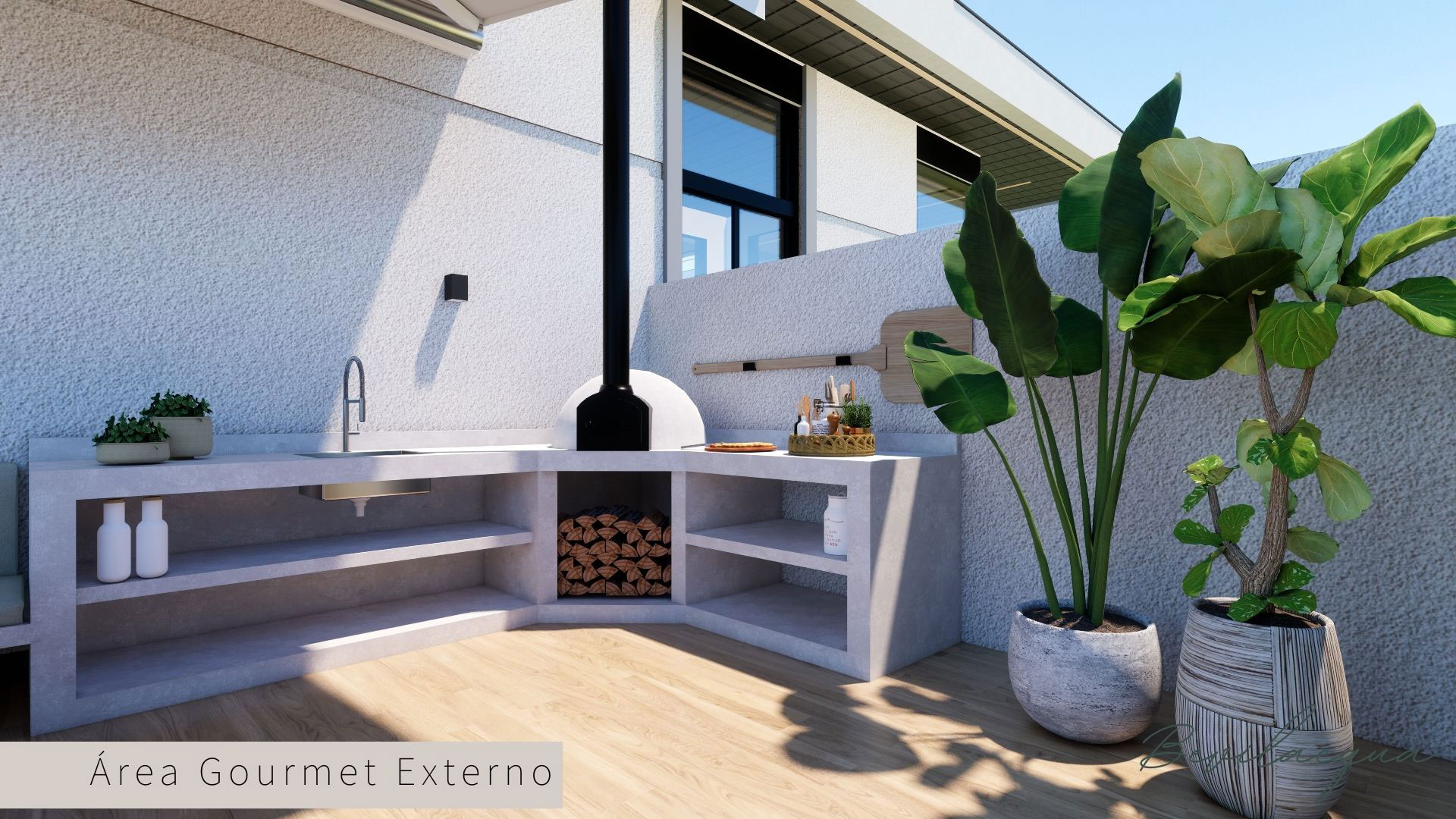Projeto de Nadia e Elianai – uma residência térrea implantada em um terreno amplo, que permitiu explorar uma implantação estratégica e uma distribuição inteligente dos ambientes. A generosidade do lote possibilitou criar uma casa horizontal, com fluidez entre os espaços e forte integração com a área externa.