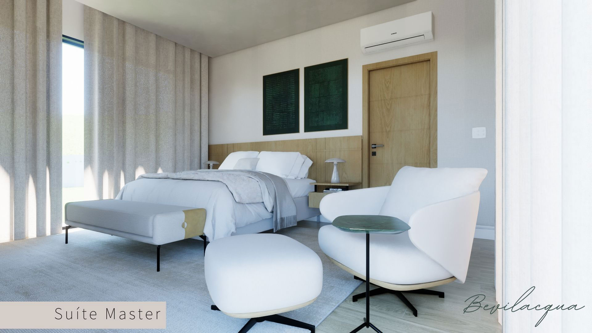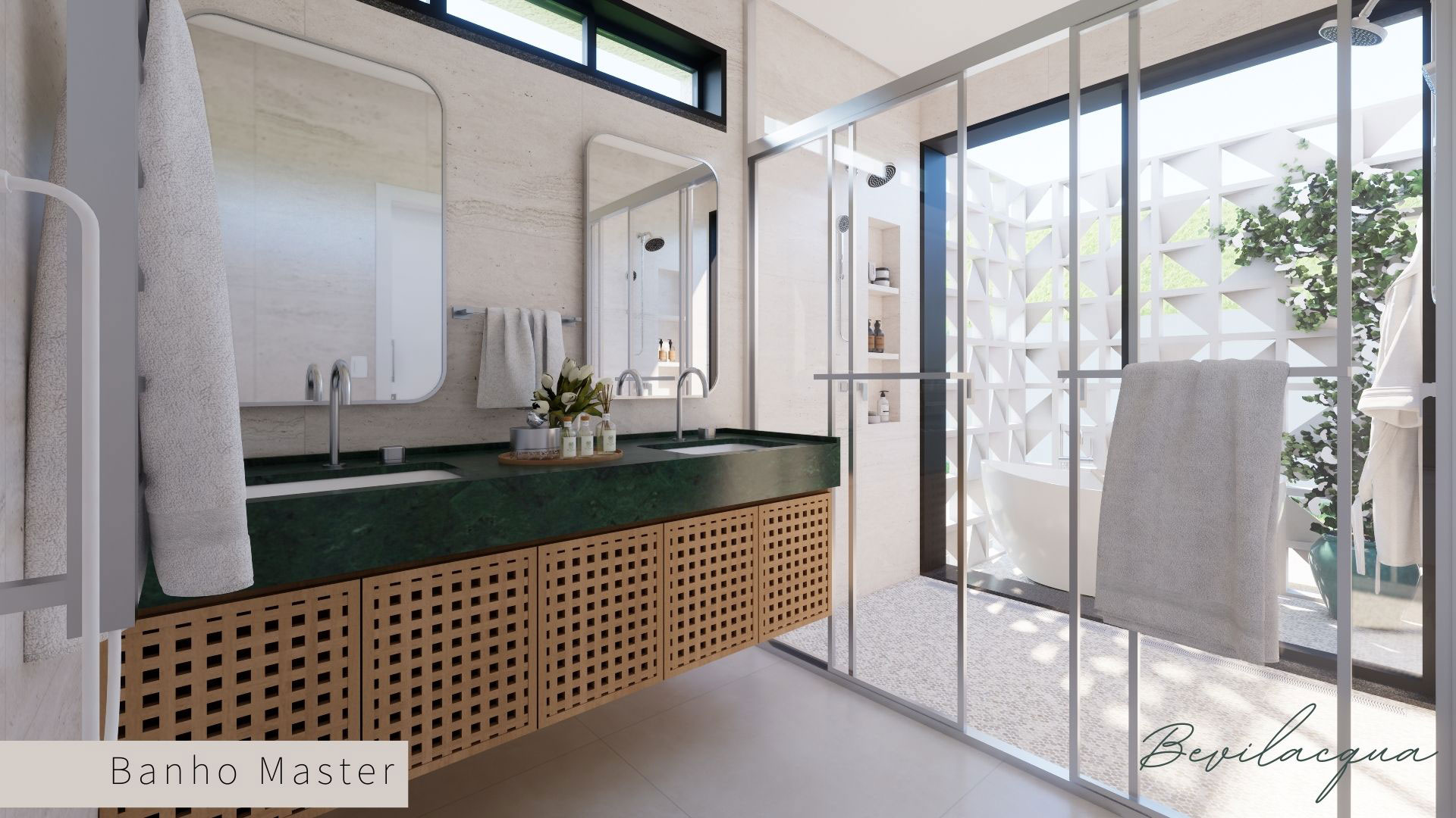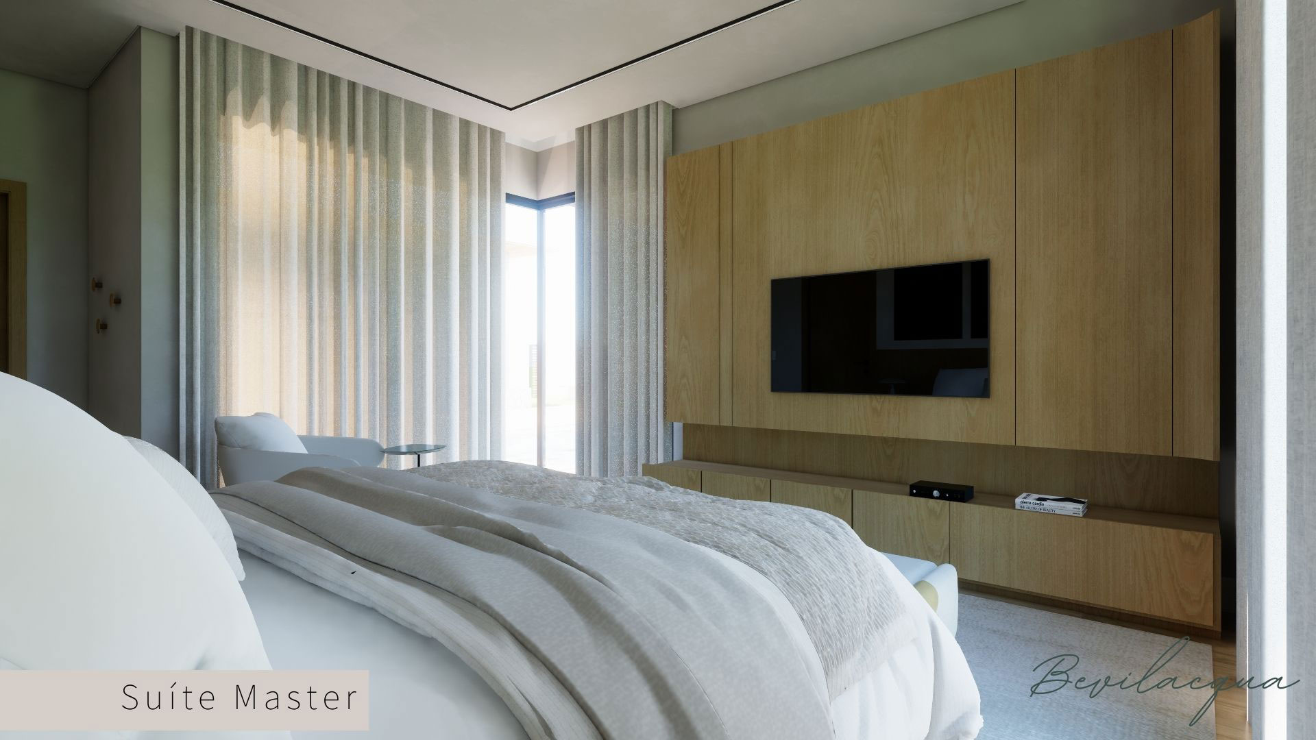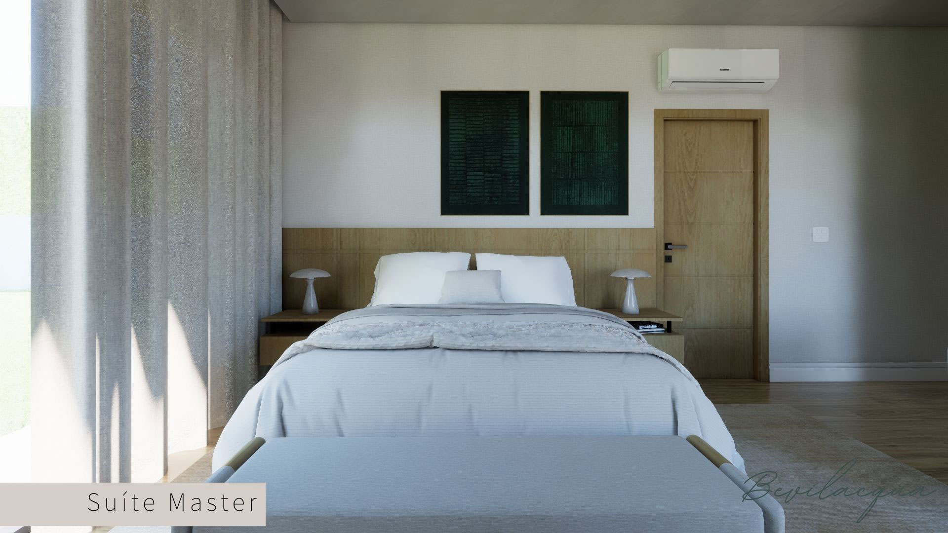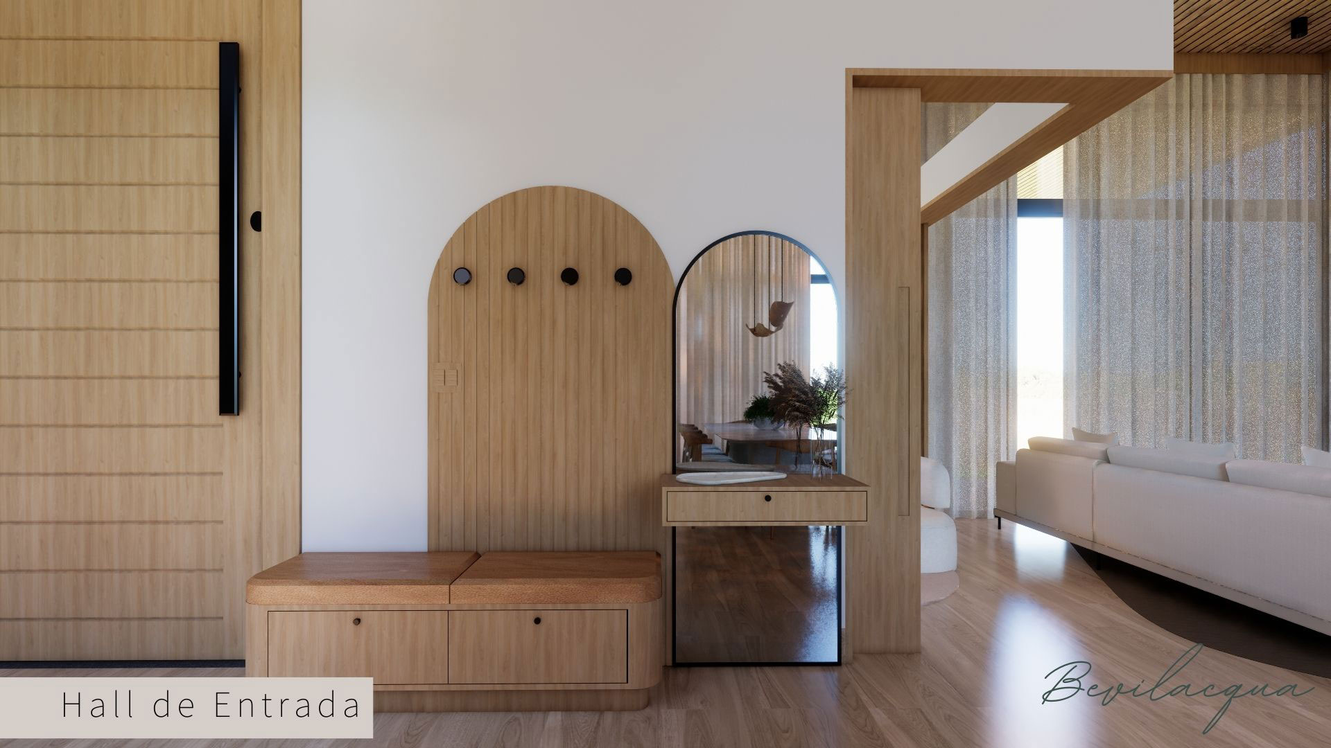Projeto de Nadia e Elianai – uma residência térrea implantada em um terreno amplo, que permitiu explorar uma implantação estratégica e uma distribuição inteligente dos ambientes. A generosidade do lote possibilitou criar uma casa horizontal, com fluidez entre os espaços e forte integração com a área externa.