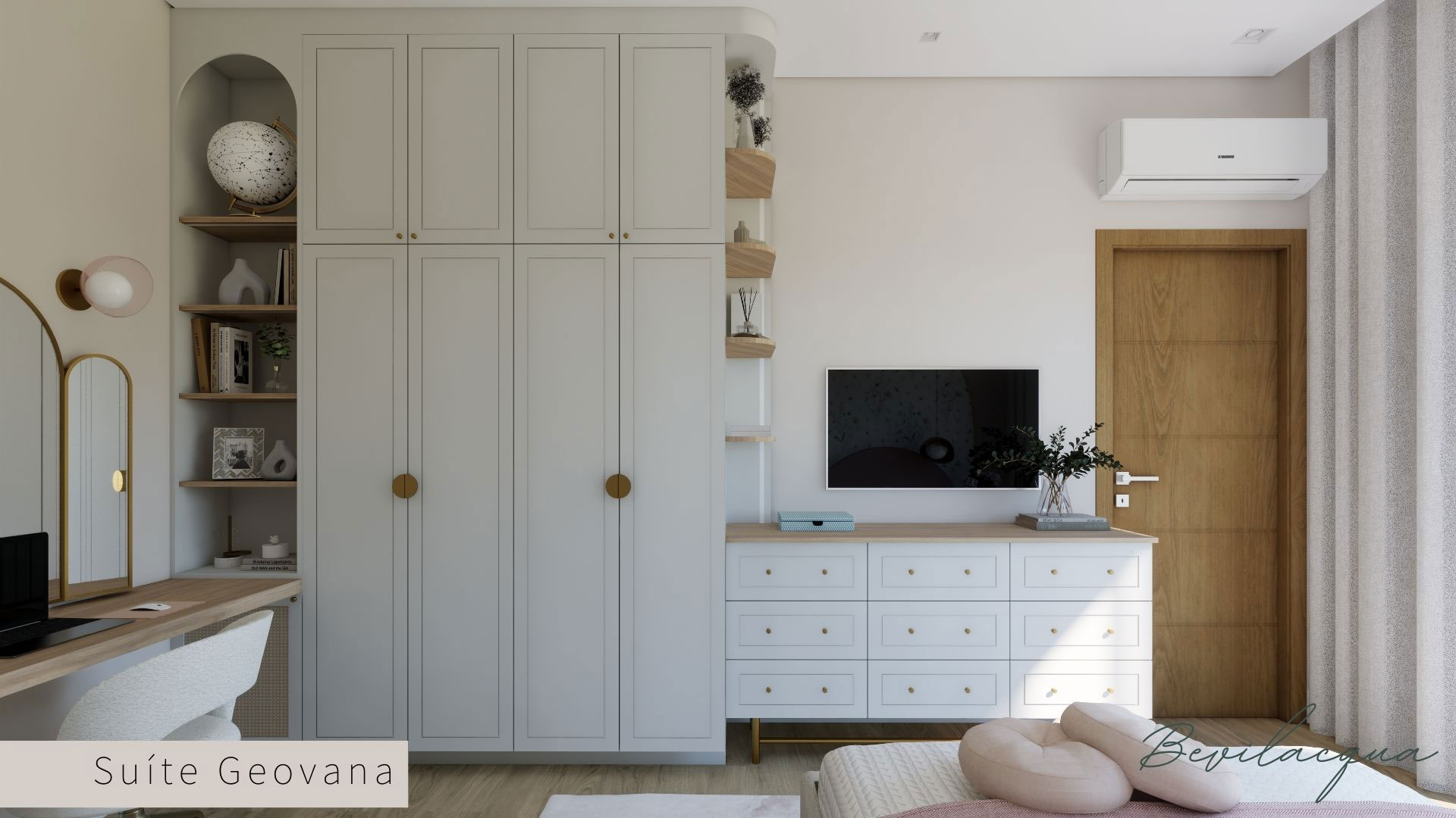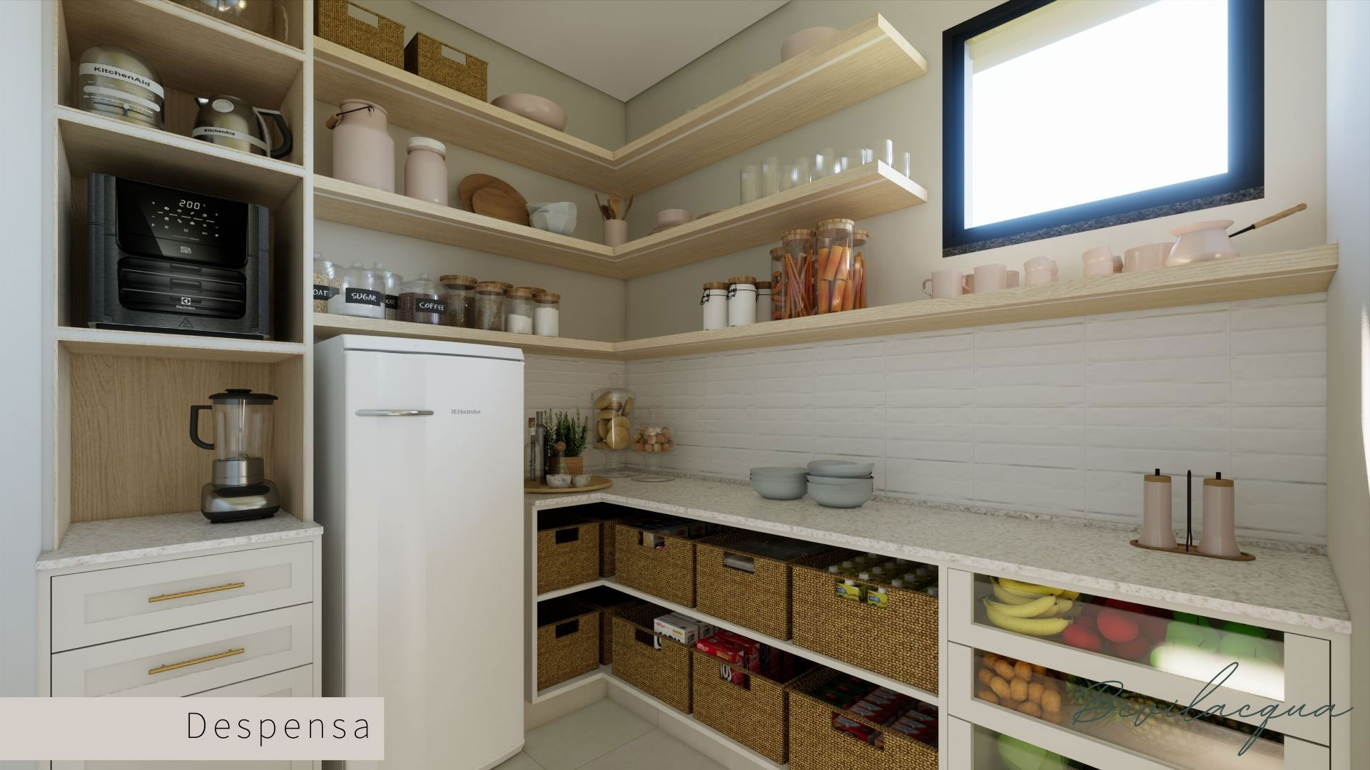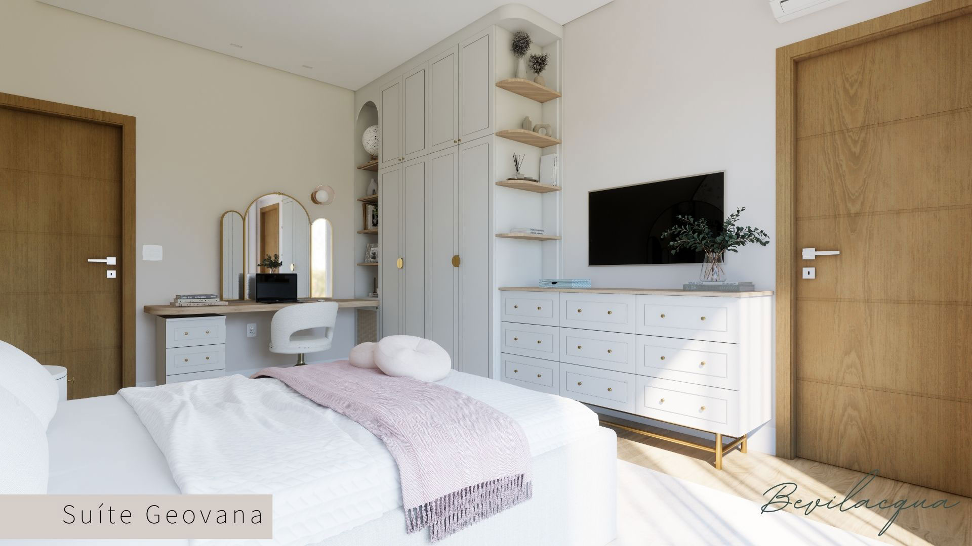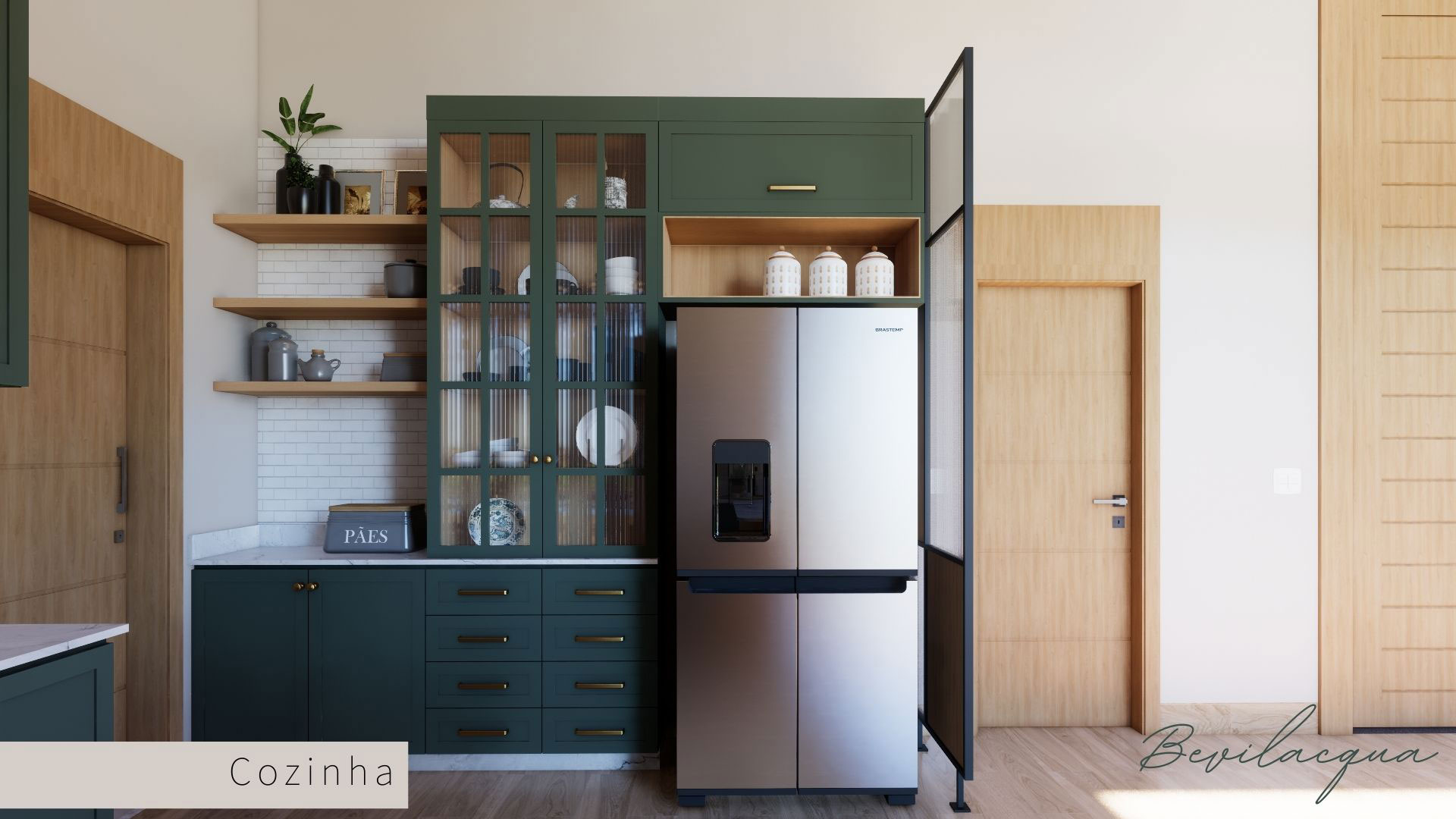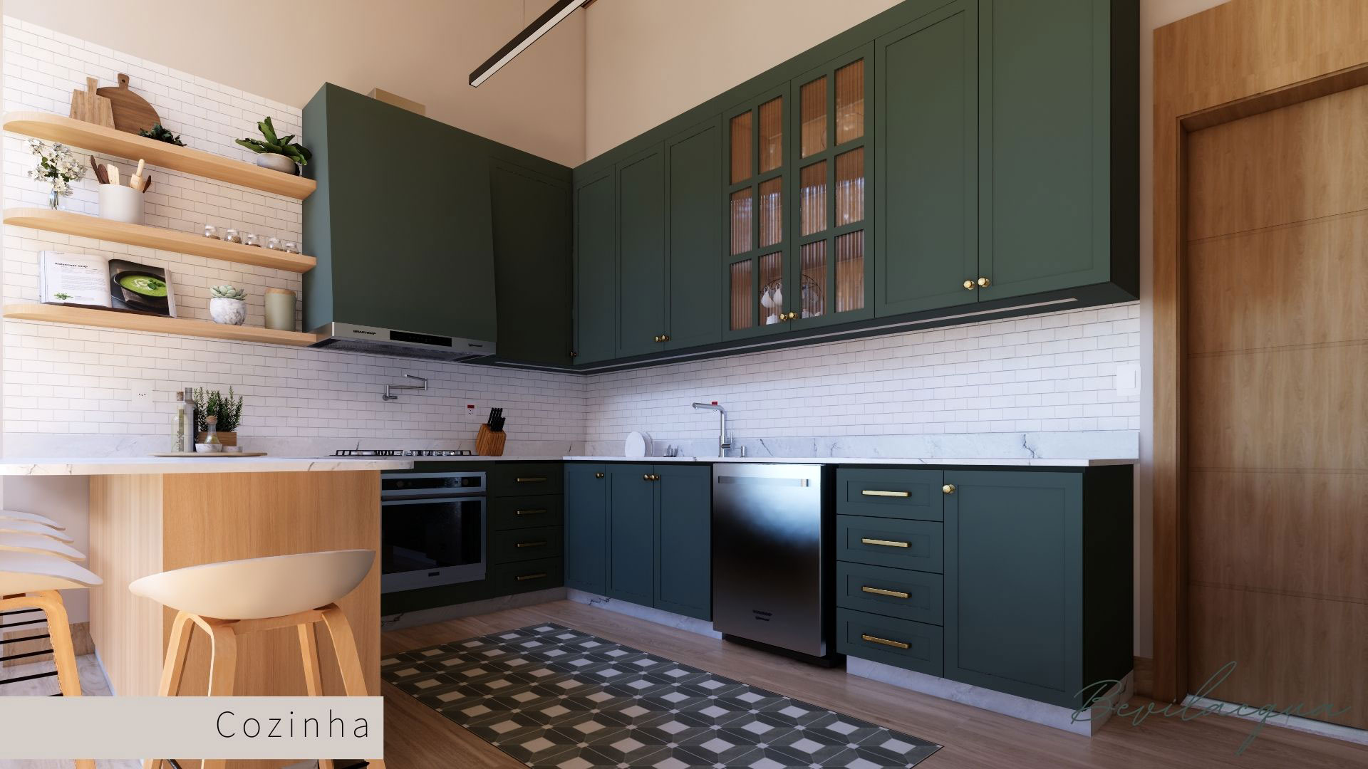Projeto de Nadia e Elianai – uma residência térrea implantada em um terreno amplo, que permitiu explorar uma implantação estratégica e uma distribuição inteligente dos ambientes. A generosidade do lote possibilitou criar uma casa horizontal, com fluidez entre os espaços e forte integração com a área externa.