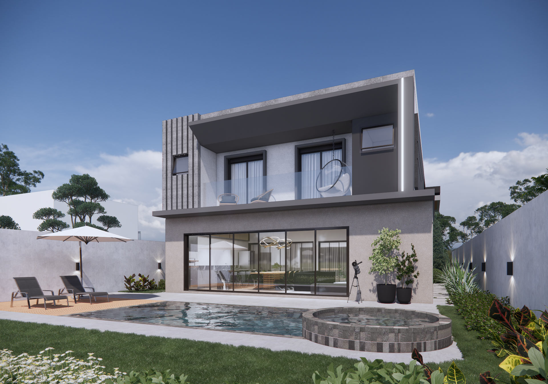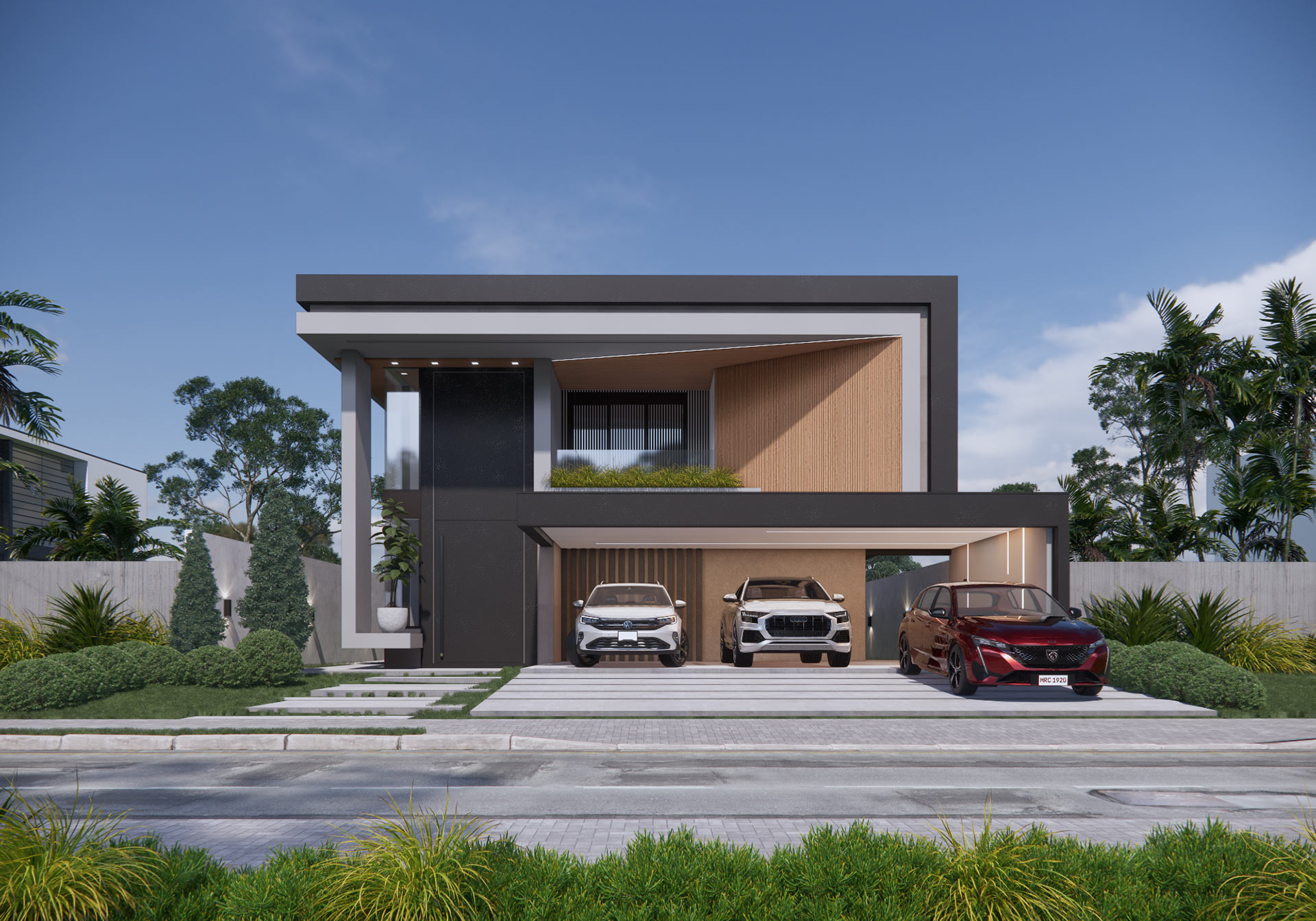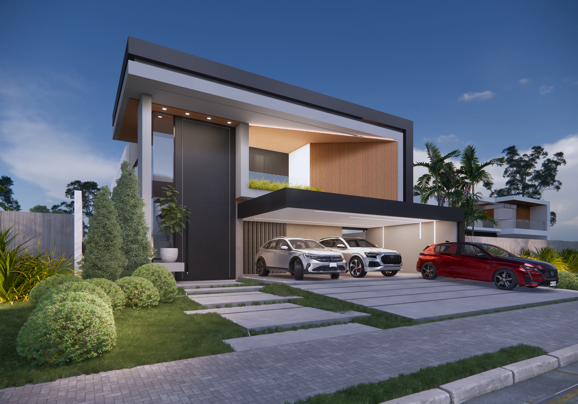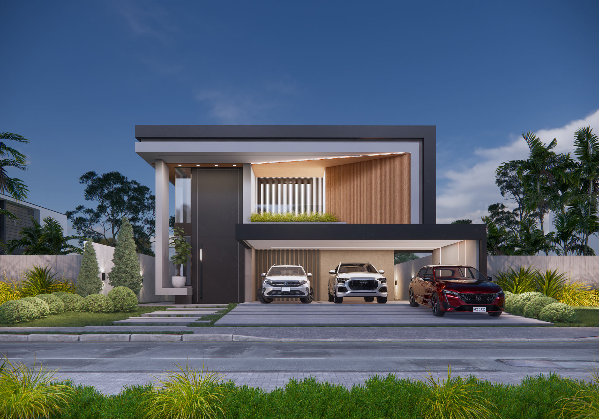 Este projeto no Jardim das Nações apresenta uma composição contemporânea marcada por linhas fortes, iluminação precisa e integração harmônica entre materiais nobres. A fachada imponente e a volumetria bem definida refletem uma residência desenhada para oferecer amplitude, conforto e personalidade.